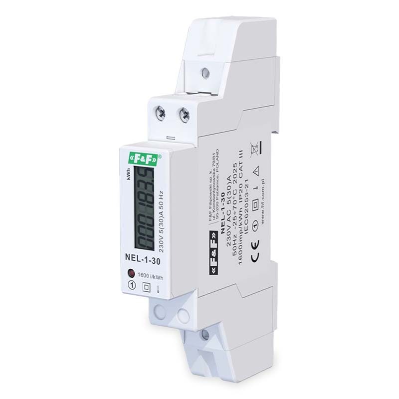 Jednofázový digitálny elektromer NEL-1-30 je určený k podružnému meraniu spotreby elektrickej energie samostatných spotrebičov alebo spotrebičov v skupinách.