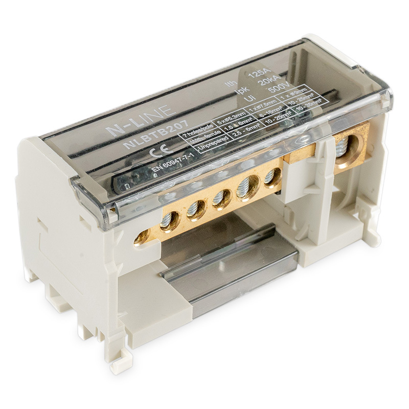 Krytý svorkovnicový blok, 2x (1x35mm² + 3x25mm² + 7x6mm²)