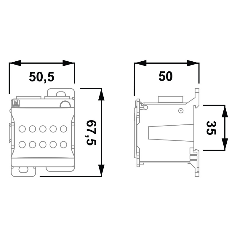 Rozbočovacia svorka, Al/Cu, 3x16mm² + 4x6mm² + 3x16mm²